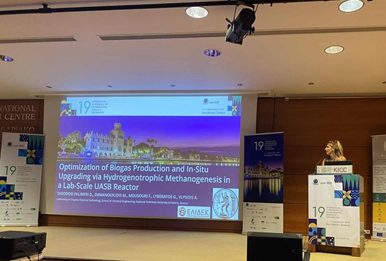 Dissemination of WP2 was performed primarily in an international scientific conference focused on environmental science, environmental technologies, circular economy and sustainability. Specifically, Dr. Dimitra Theodosi Palimeri presented orally (Figure 3) the work titled “Optimization of Biogas Production and In-Situ Upgrading via Hydrogenotrophic Methanogenesis in a Lab-Scale UASB Reactor” in the topic “Energy Technologies” at the 19th International Conference on Environmental Science and Technology (CEST2025), 3–6 September 2025, Kos Island, Greece.